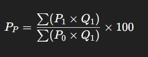 For example, if the price index is 120, it means prices have increased by 20% compared to the base period.