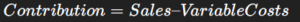 Contribution: The difference between Sales Revenue and Variable Cost.