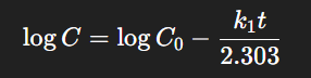 • A linear plot of log concentration vs. time suggests first-order kinetics.