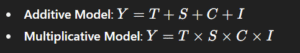 Seasonal Variation (S) – Short-term patterns that repeat at regular intervals (e.g., increased sales during festivals).